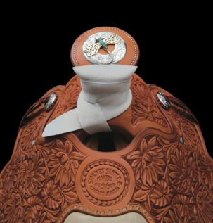That was the start of a 38 year(so far)working relationship and friendship. Over the years I’ve had the pleasure of working on multiple projects with Chuck, gained knowledge from each one- also had the honor of creating many TCAA collaborations with him. At this moment I am engraving corner plates for a Stormes Saddle.