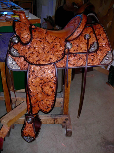 My first Craftsman mentor was Saddlemaker Chuck Stormes. A couple years into Silver work full-time I took a booth at a trade fair in Calgary, Alberta. A person who stopped at the booth suggested I call Chuck Stormes “he uses a lot of saddle silver” he said. I phoned Mr Stormes and set a date and time to meet at his shop.